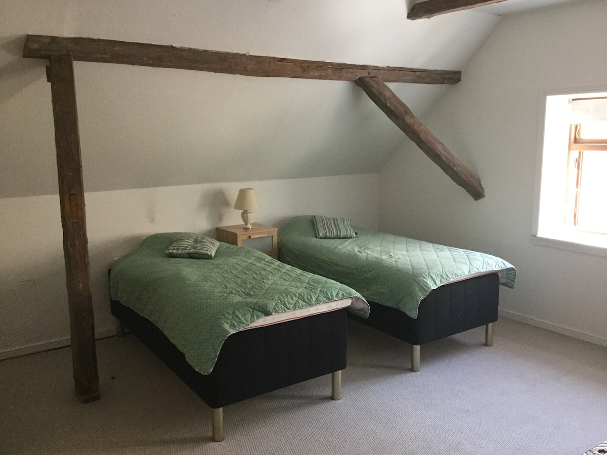 Comfortable and quiet room with a flexible bed setup—double or two singles, high-end elevation beds for a comfortable sleep. Includes a desk and large closet. An additional bedroom is available for kids or friends (never rented to other guests). Enjoy bed and breakfast, with occasional dinner options. The room and private bathroom are located in a secluded hallway, used only by you. No smoking no pets. Bike rental nearby. 5 min drive/bus to beach 25 min drive/train to Copenhagen Central Station