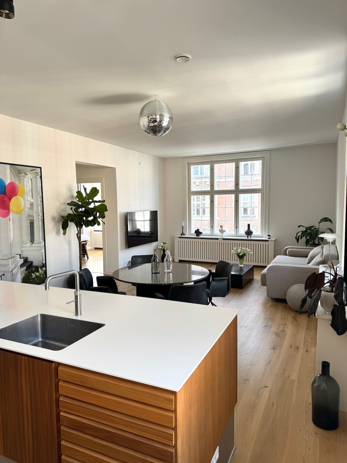 You will be staying right where the old town starts and as a neighbour to Copenhagen's town hall. The penthouse was renovated from top to toe in January 2020 and has all modern amenities and features you need while the historic charm of the building is well kept. The 4 bedroom penthouse is situated on the 5th floor with direct elevator access. It's got high ceilings, skylights and a big open living and kitchen space for all to dine or chill out together.