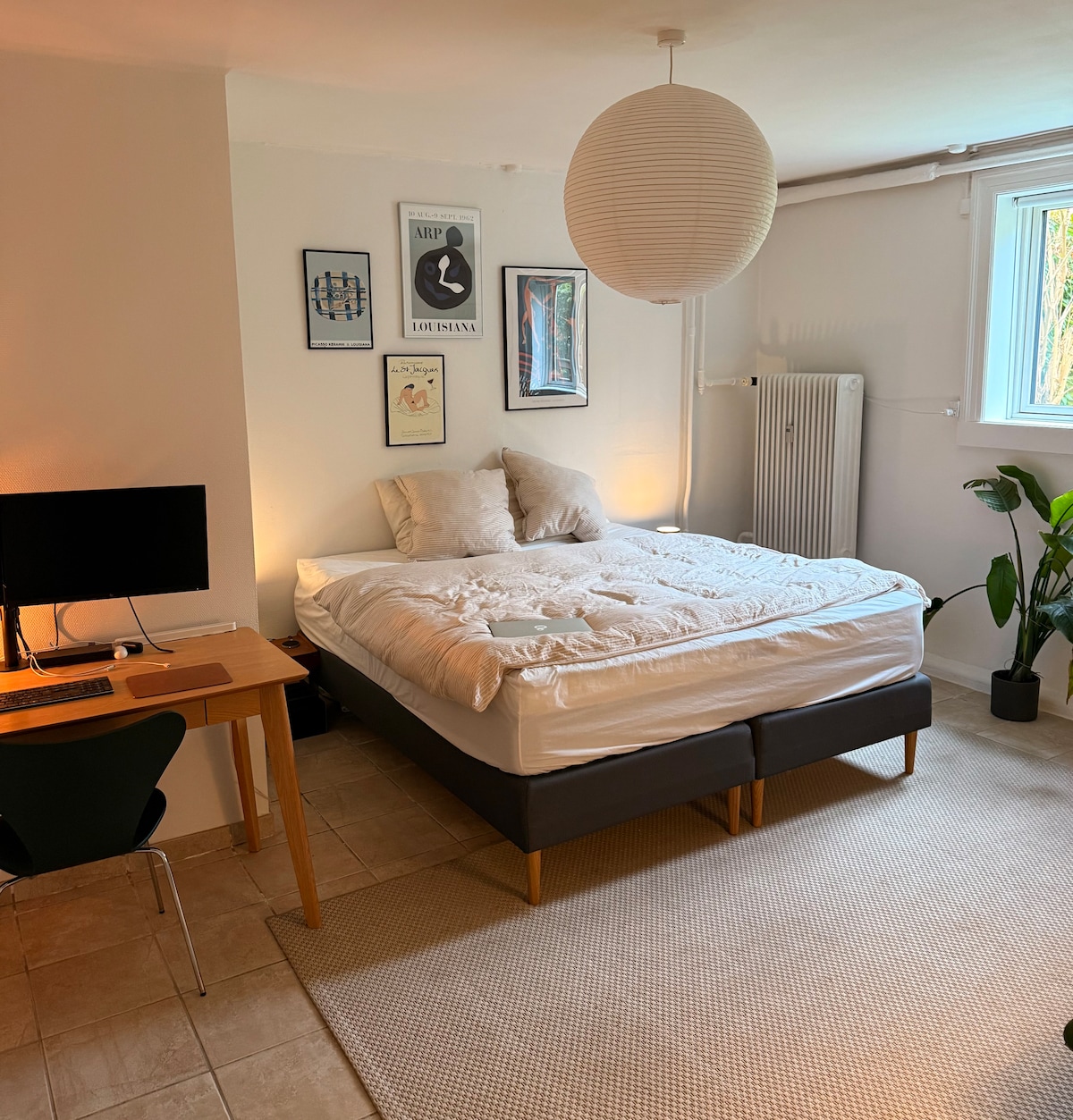 Nice and newly renovated basement of a villa with private entrance. Located close to a Flintholm Metro station. Bedroom with closet, dresser and a small table. New kitchen with stove, oven and fridge. Private bathroom and toilet with access to washer and dryer. The area includes bedroom, kitchen, shower and toilet. There is a livingroom/tv-room that can be shared with the host as agreed. Very central in a quiet neighborhood close to public transportation and a nice park.