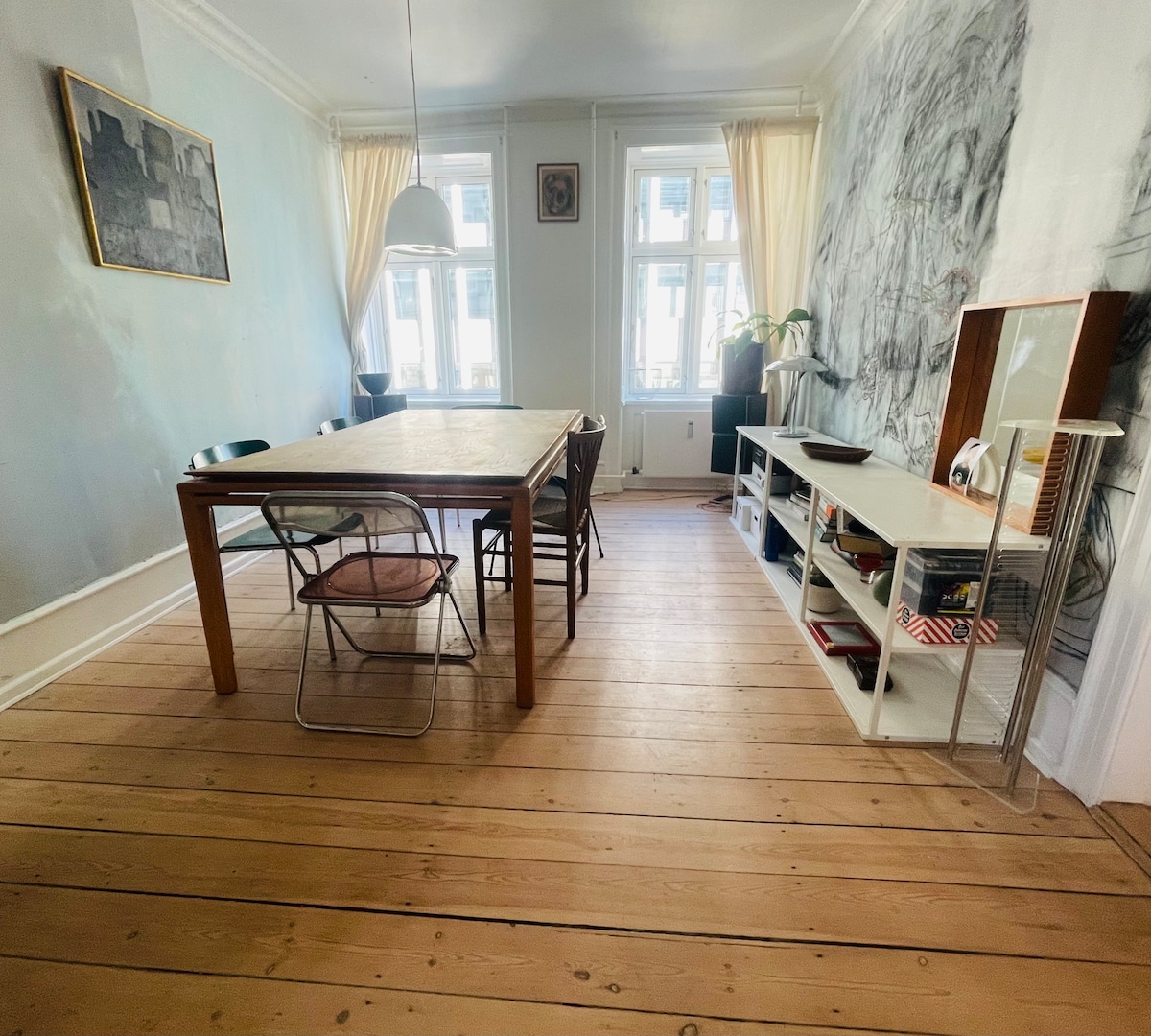 Central, spacious and light apartment in a scandi style in cosy Vesterbro. 3rd floor - no lift. Renovated, in an building from 1854. Quick access to cosy cafes, restaurants and shops. 10 minutes from Central station, vibrant Meatpacking district, city center and parks. Large and renovated kitchen, large bathroom with a toilet and bathtub are fully equiped. 3 separated bedrooms and a large living room divided into a dinning room where up to 10 people can have a dinner and a TV room.