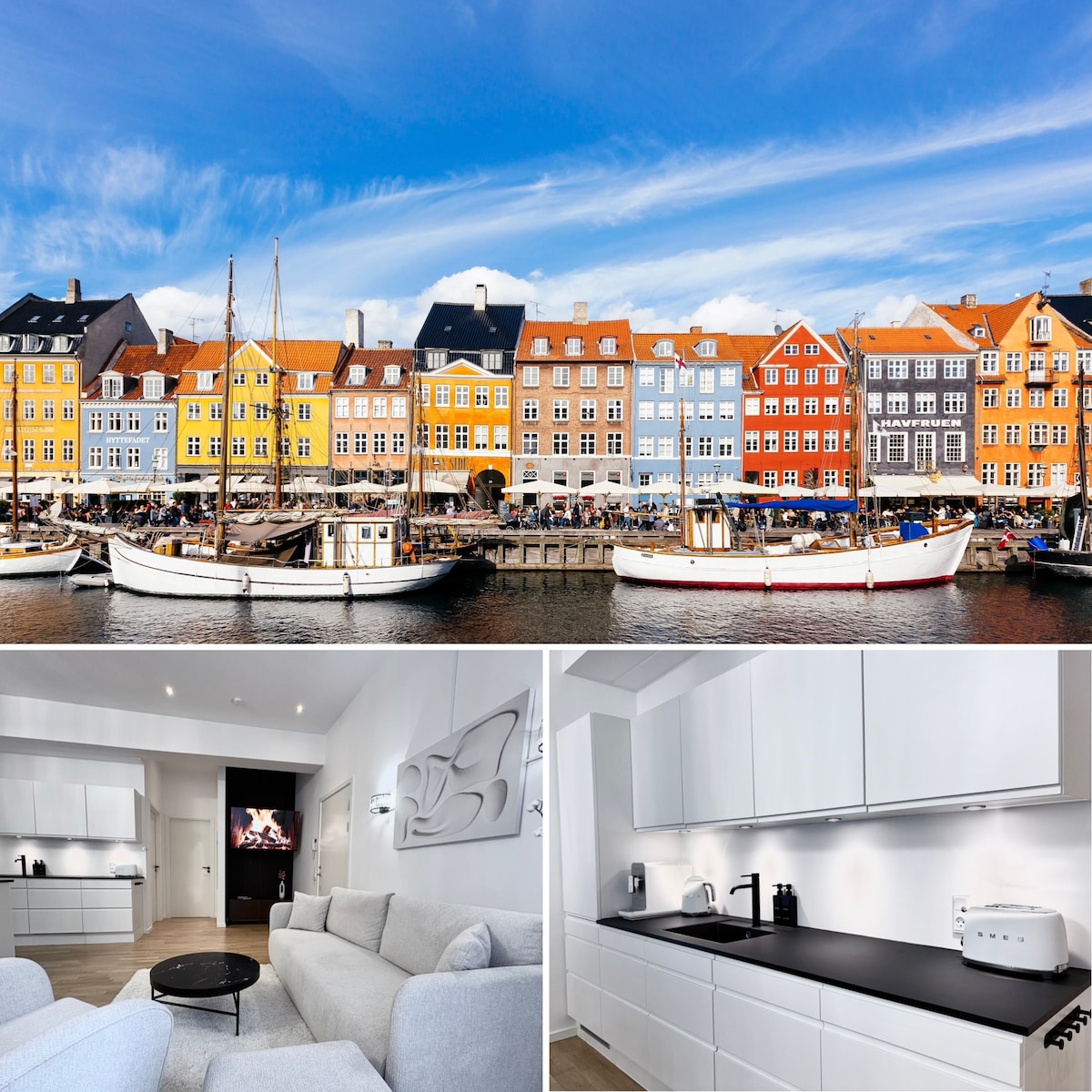 Nyrenoveret udsigtslejlighed midt i Nyhavn! Entré med garderobe. Stor spisetue med dobbelte terrassedøre, direkte til Kanalen og Nyhavn. Stor sofa/tv stue igen med kig til vandet. badeværelse. Flot nyere køkken. Underetagen byder på, stor fordelingsentré som gør at lejligheden er delevenlig for 2 familier. 2 store soveværelser. Stort badeværelse. Gæstetoilet og stor bryggers med vaskefaciliteter. Aflåst parkeringsplads. Fuld møbleret og alt i udstyr. Tv / wifi, legeplads og gårdmiljø