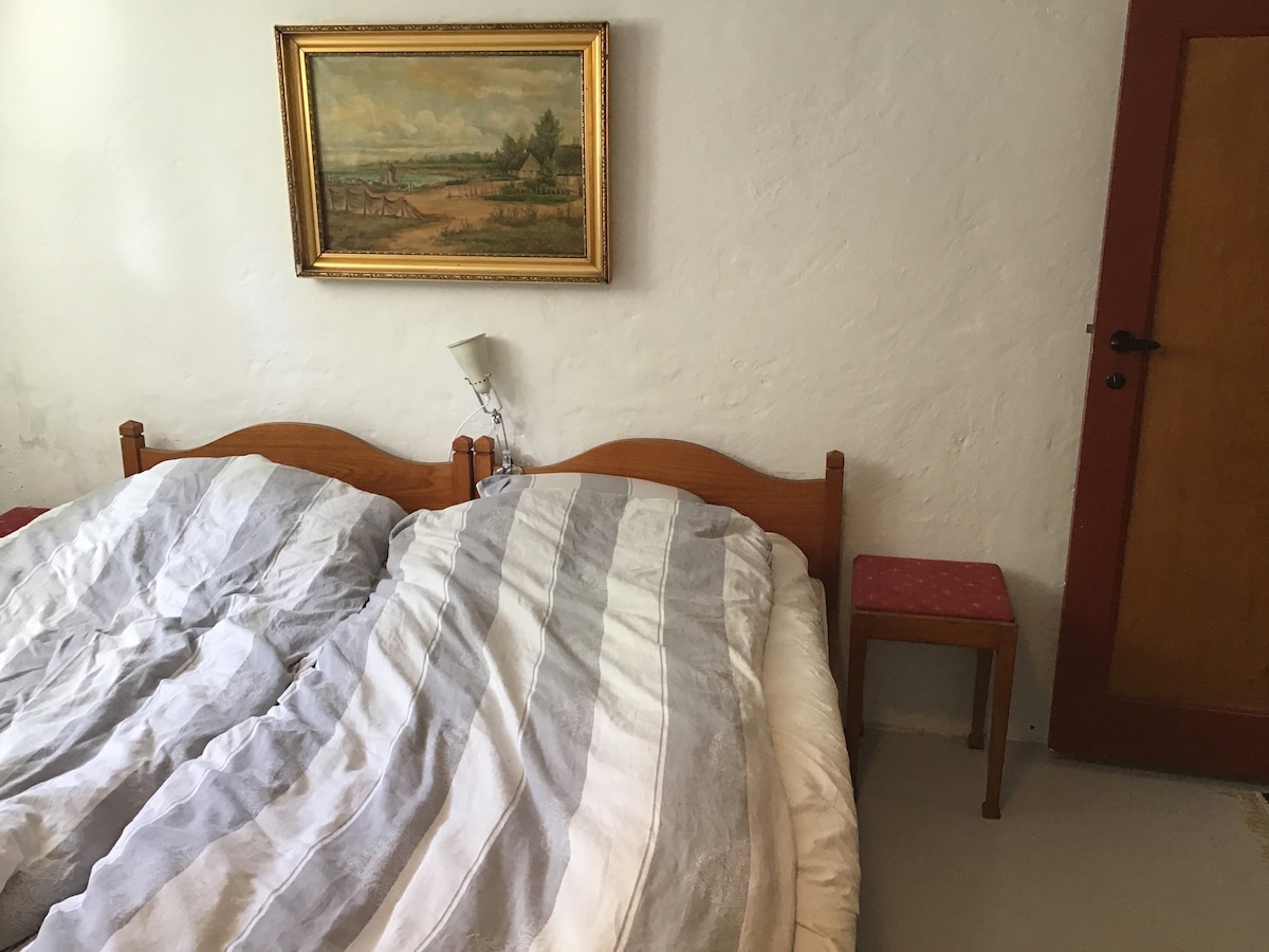 Værelset ligger kælderen af vores dejlige hus. Vi har tidligere lejet værelset ud hos Airbnb, men har haft det på pause fordi vi har bygget om. Værelset er privat med egen indgang og bad. Der er plads til at spise i gangen, hvor der er bord og to stole. Det er muligt at lave en opredning på gulvet, men det ideelle er to personer. Hvis vejret tillader det, kan der dækkes op til morgenmad på terrassen (se billeder). Der er ca. 300 meter til indkøb og offentlig transport. Busserne kører hele tiden.