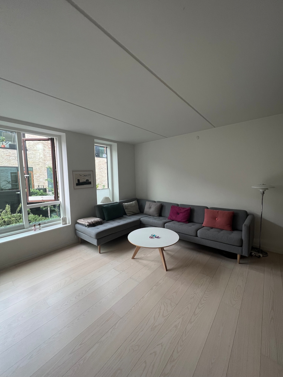 This apartment sits in a historic factory building in the heart of Copenhagen Harbor. You can swim from the front door, sunbathe in one of the private gardens, take in the evening sun on one of the balconies, stroll to the nearest beach (<5 mins), or with water views from all rooms, just kick back in a vintage chair and watch the boats go past. To head into Copenhagen you can jump on the ferry (200m from the door) and be there in a few minutes, or walk there in 15 min.