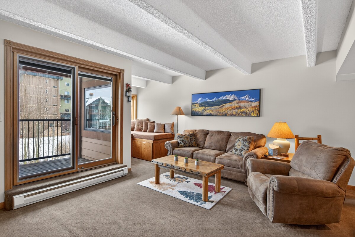 Experience ultimate relaxation in our newly renovated, spacious ski-in, ski-out condo at Copper Mountain. Just a 5-minute walk to the slopes, you'll maximize your time on the mountain! Unwind in the communal hot tub and sauna, and enjoy the convenience of restaurants in the same building. Nestled in Copper's Center Village, you're just steps away from all the dining and shopping Copper has to offer. Fall asleep and wake up to the soothing sounds of 10 Mile Creek right outside your balcony.