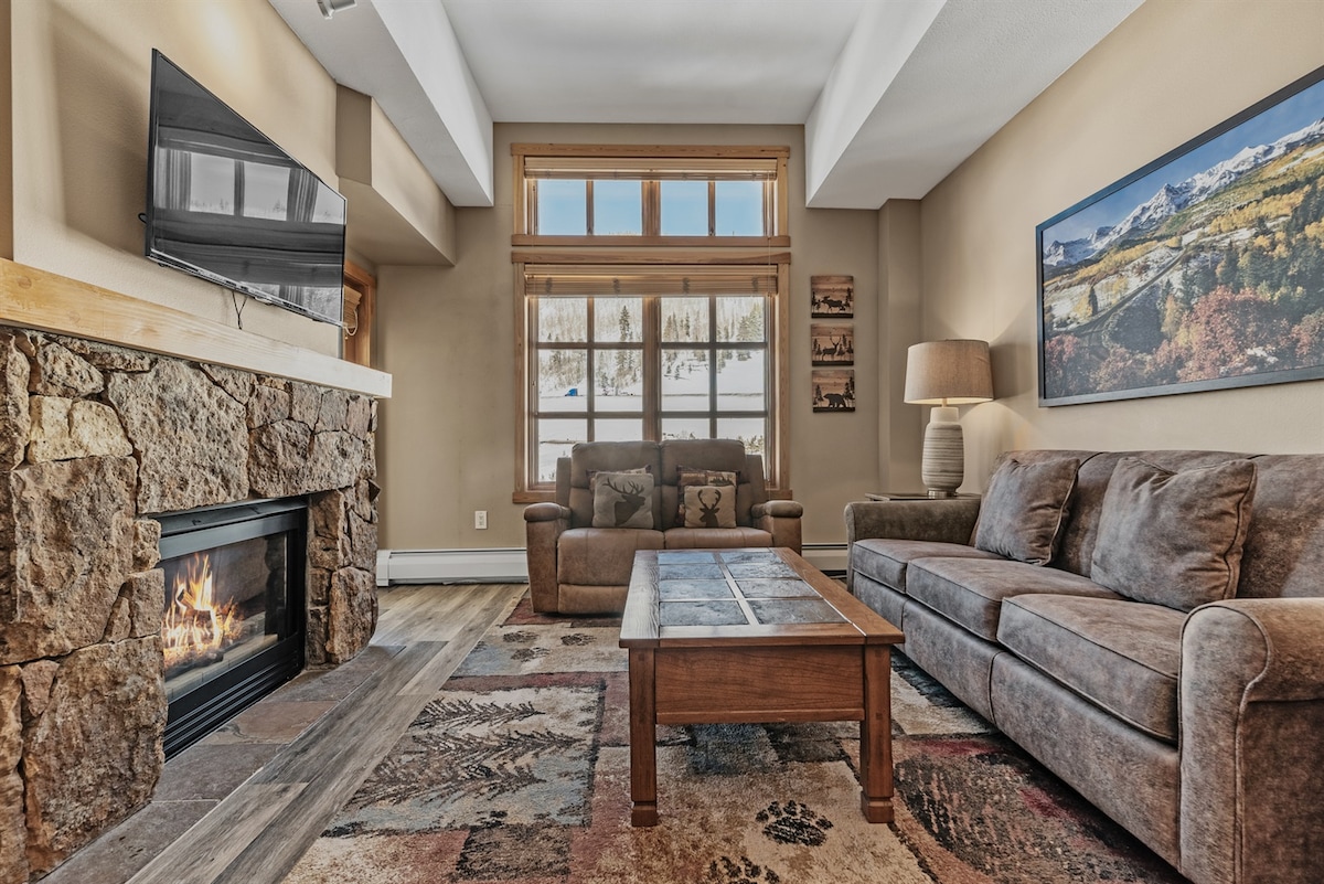 Welcome to our light and bright 1 bedroom condo in the heart of River Run Village(Keystone Mountain)! Skip the shuttles to the lifts as this condo is a 3 minute walk to the gondola! This condo sleeps four and features a private one bedroom with king bed as well as an updated unit with granite countertops. Enjoy your favorite beverage while soaking up the sun and spectacular views of the slopes while either inside heated by the fire, or outside on your own private balcony.