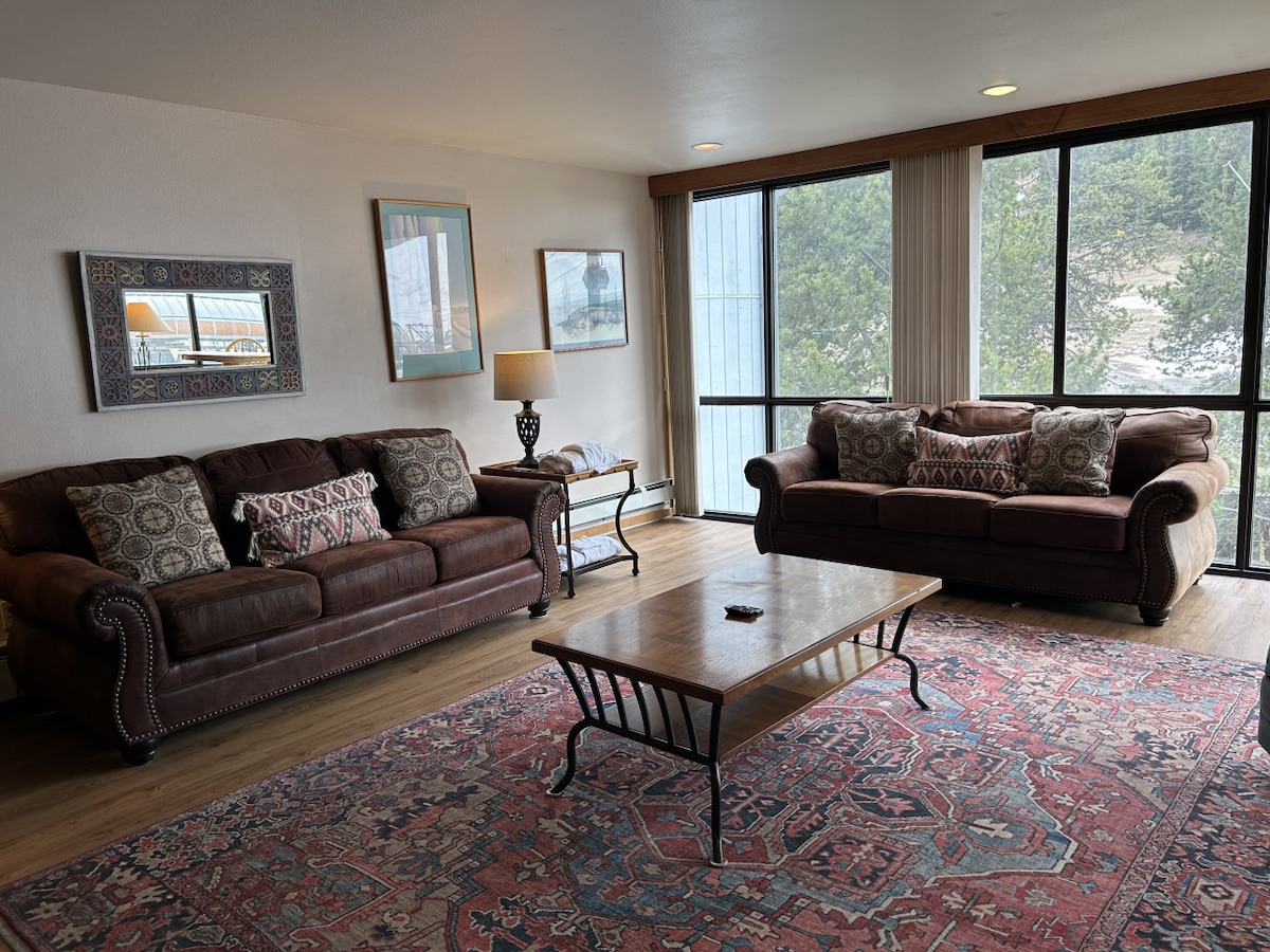 Welcome to my condo in Copper Mountain's Center Village! It is only a short 4-minute walk to the American Eagle and American Flyer lifts. The condo has one bedroom and one bathroom, with a large kitchen open to the comfortable living room with gas fireplace. Corner unit with windows everywhere! Bonus sun room sitting area with beautiful views of West Lake, Center Village and the mountains and ski runs of Copper Mountain. Summit County Short Term Rental License STR21-02225