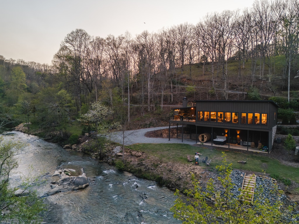 ⭐ Top 1% of Airbnb Homes “One of the best Airbnbs I’ve ever stayed in—and THE nicest in Blue Ridge.” – Scott Wake up to the sound of rushing water. Sip coffee on a swing just feet from the river. End your nights around a fire with the mountains wrapped in silence. TROUT "N" ABOUT is a premier RIVERFRONT CABIN DIRECTLY ON THE TOCCOA RIVER, designed for guests who want both PEACEFUL SECLUSION and UPSCALE COMFORT—just 8.5 MILES FROM DOWNTOWN BLUE RIDGE, with ALL PAVED ACCESS.