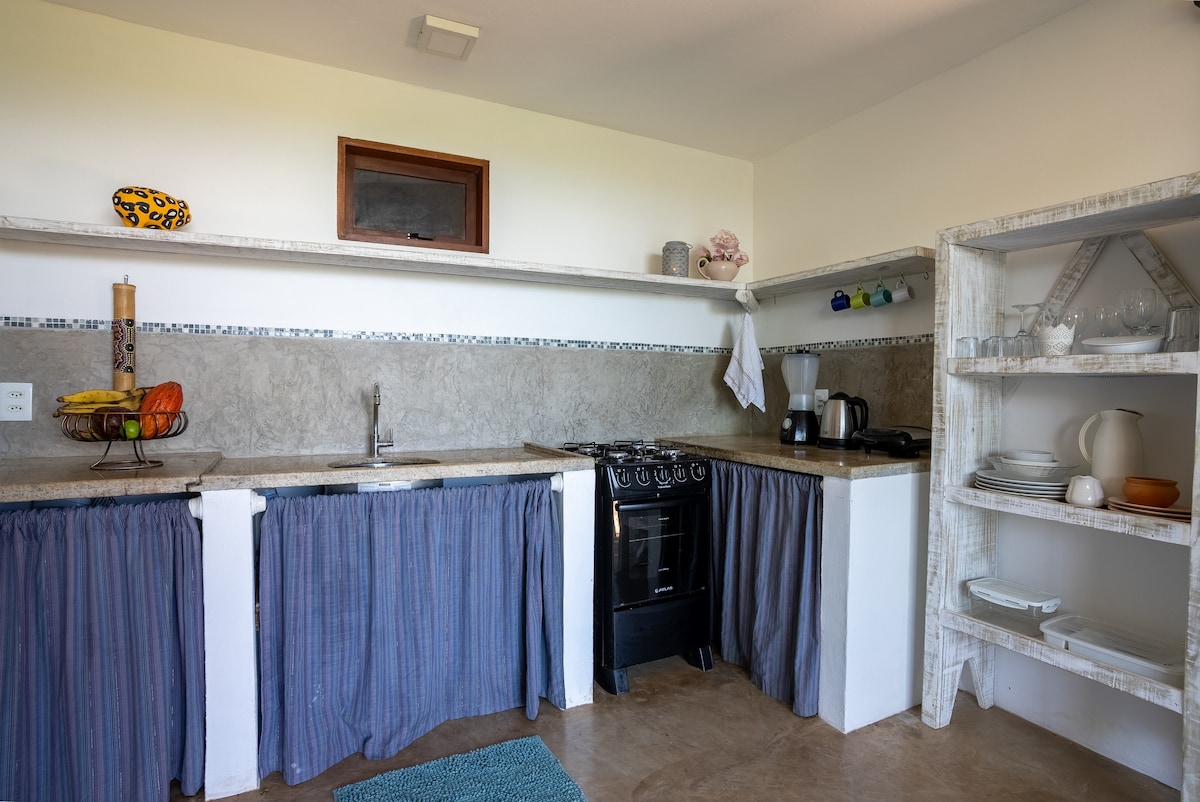 A nossa casinha foi pensada com muito carinho para trazer o máximo de conforto aos nossos hóspedes, desde uma jacuzzi incrível super privativa no deck da sua suite, enxoval inteiro de 400 fios a uma internet excelente de 200 Mb em fibra ótica para quem está de homeoffice. Nossa Vila tem 2.200 m² com lindas árvores que proporcionam um espetáculo a parte. Temos visitas diárias de 3 espécies de macacos, diversos pássaros e até bichos preguiça. :) Estamos a 2km do Quadrado e 3 km da praia + próxima