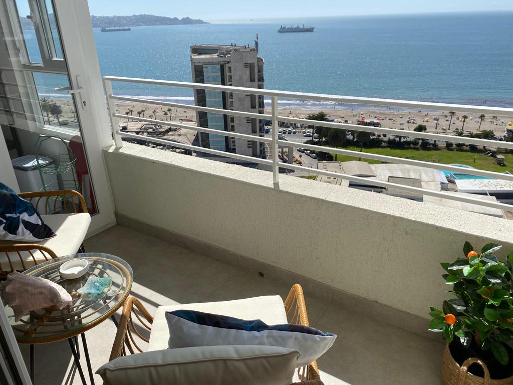Lindo y comodo departamento de 1 dormitorio ubicado en plena Avenida del Mar, en un 5to piso frente al mar, se encuentra a solo 7 minutos caminando del casino y en su entorno cercano hay cafés, pubs, restaurant y minimarket. Nos preocupamos de cada detalle de su decoración, como también que cuente con buenos colchones y estamos mes a mes renovando el lugar. Cuenta con estacionamiento cubierto y wifi.