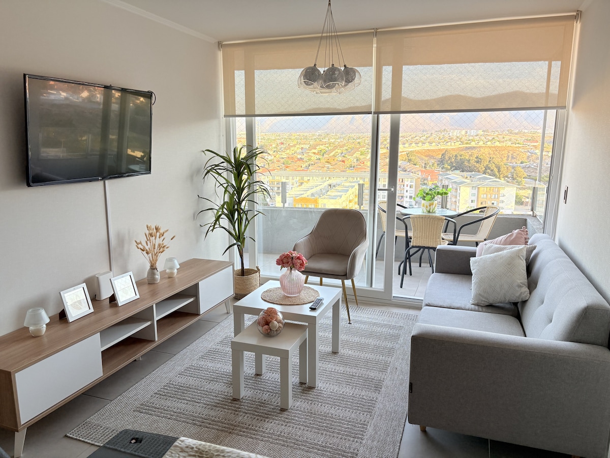 Departamento listo para la temporada 2026 con excelente ubicación y vista panorámica en playa la herradura. Único complejo con SPA dentro de las instalaciones y acceso a sauna seco y húmedo así como también jacuzzi. Nos preocupamos de cada detalle para que te sientas cómod@ y disfrutes tu estadía en un lugar lindo y agradable.