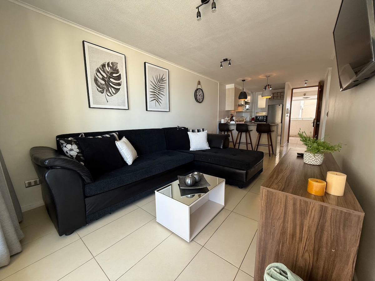 Departamento listo para la temporada 2026 con excelente ubicación y vista panorámica en playa la herradura. Único complejo con SPA dentro de las instalaciones y acceso a sauna seco y húmedo así como también jacuzzi. Nos preocupamos de cada detalle para que te sientas cómod@ y disfrutes tu estadía en un lugar lindo y agradable.