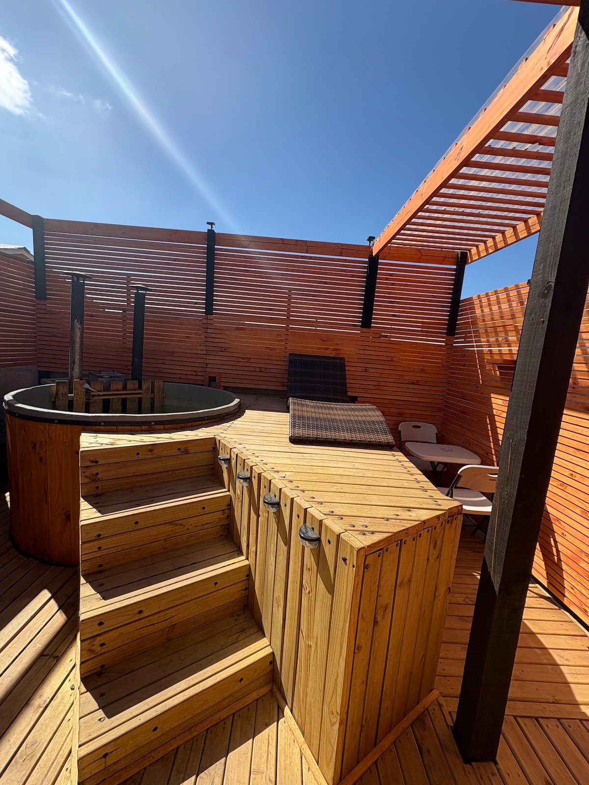 Alojamiento deluxe completo y privado para disfrutar en familia. Tengo tinaja, piscina, terrazas para yoga, cama de cuarzo. Sol 🌞 asegurado y los cielos en la noche son estrellados 🌠. para la noche tenemos quincho, zona con parilla grande tipo Argentina y zona de fogata bajo techo. El lugar es tranquilo, seguro y de mucho silencio en el entorno. ideal para desconectarte y descansar. con servicio de masajes, sonoterapia, apicultura, yoga entre otros.