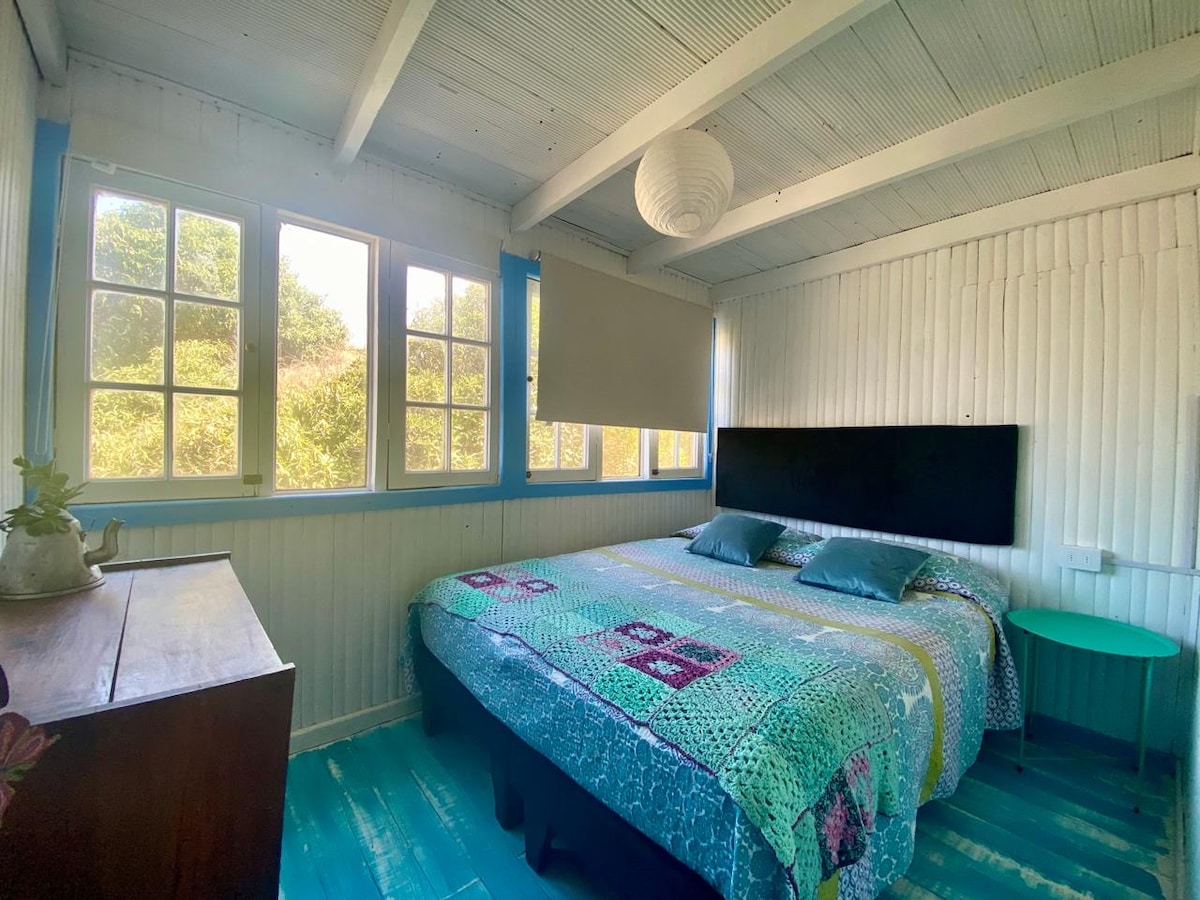 Nuestra cabaña estilo americano tiene un exterior moderno con un interior cómodo y sereno. La cabaña tiene estacionamiento y está situada en una antigua granja familiar (1.5 cuadras a la playa) cerca de varios restaurantes/bares junto a la playa. Ideal para personas solas o parejas. No es apropiada para niños menores de 7 años.
