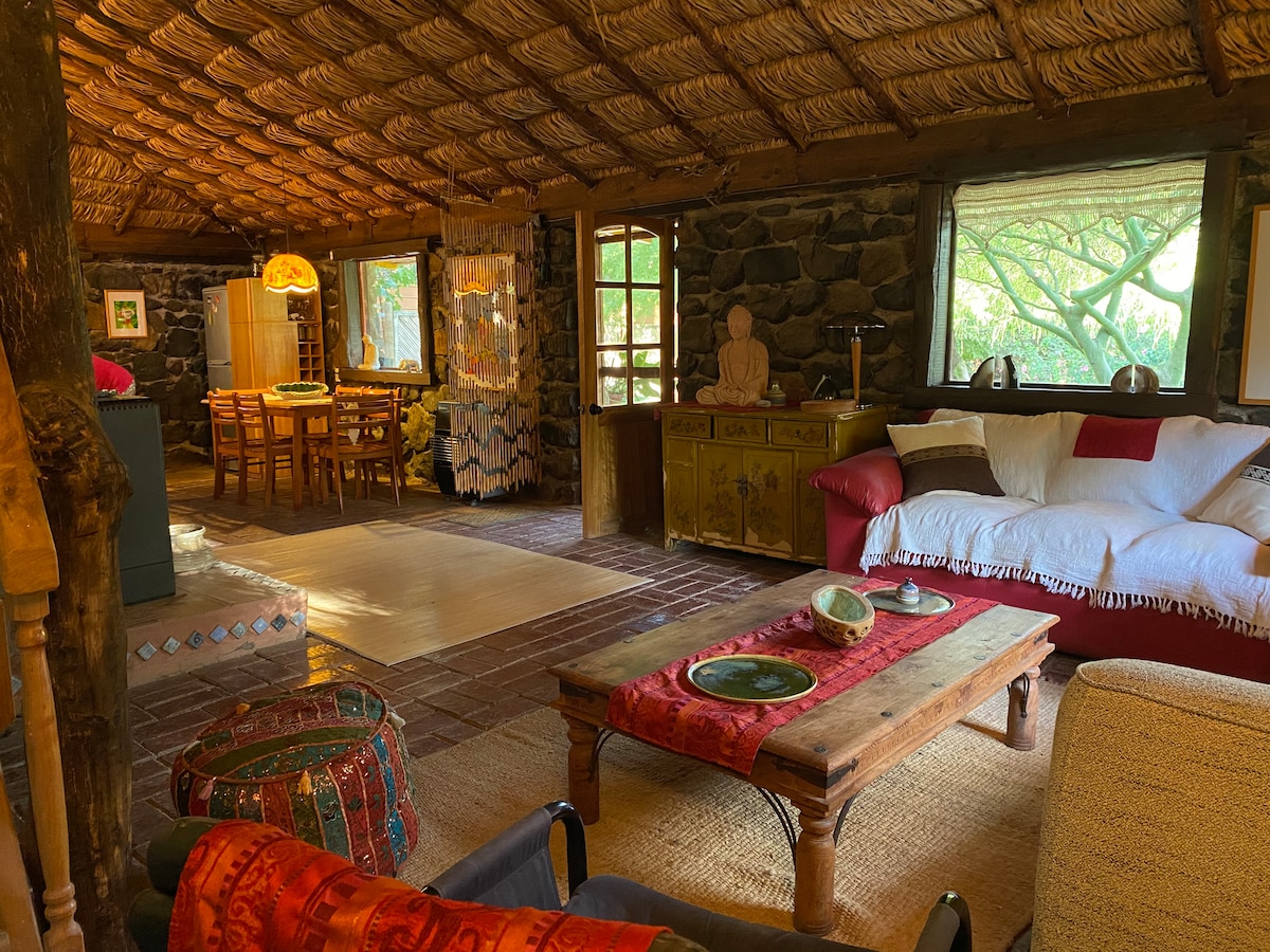 Hermosa cabaña independiente con vista a las montañas y acceso al río. A 4 minutos en auto del centro de Pisco Elqui o 20 minutos caminando. Ideal para quienes quieran estar cerca del centro, pero lejos del ruido. En verano, el huerto y los frutales del jardín están a tu disposición para que recolectes frutas y verduras. De noche te encontrarás rodeado de la inmensidad del cielo y sus estrellas. La cabaña cuenta con una habitación con cama matrimonial y un sillón cama para 2, ideal para niños.