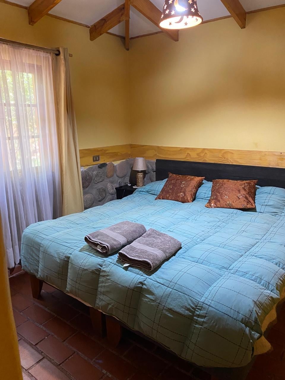 Disfruta de la sencillez de este alojamiento tranquilo y céntrico. Cada rincón está decorado con mucho amor y dedicación para que puedan disfrutar de esta estadia . El condominio es grande cuenta con ciclovías , muchas áreas verdes , piscinas , Quinchos , cine , multi cancha, gimnasio y juegos para los pequeños . Esta ubicado a 2 min. del mcdonals A 5 min del supermercado acuenta y tottus a 7 min del unimarc e lider. 10 min. en auto de la playa y mall. Locomoción a una cuadra. No te arrepentirás