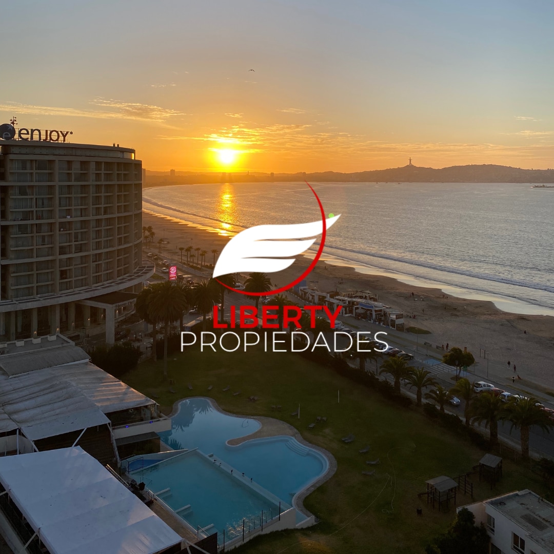 Hermoso departamento, con espectacular vista y ubicado en condominio Gran Marina a pasos de la playa y casino Enjoy. - Habilitado para 5 personas. - Completamente amoblado. - 2 dormitorios. - 2 baños. - Terraza - Tv por cable en dormitorio principal y living. - Internet. - Estacionamiento. - Condominio cuenta con acceso controlado. - Piscina - Quinchos - Amplias áreas verdes y juegos para niños. - Lavandería. - A pasos de la playa. - Junto al casino Enjoy Nota: Toallas no incluidas.