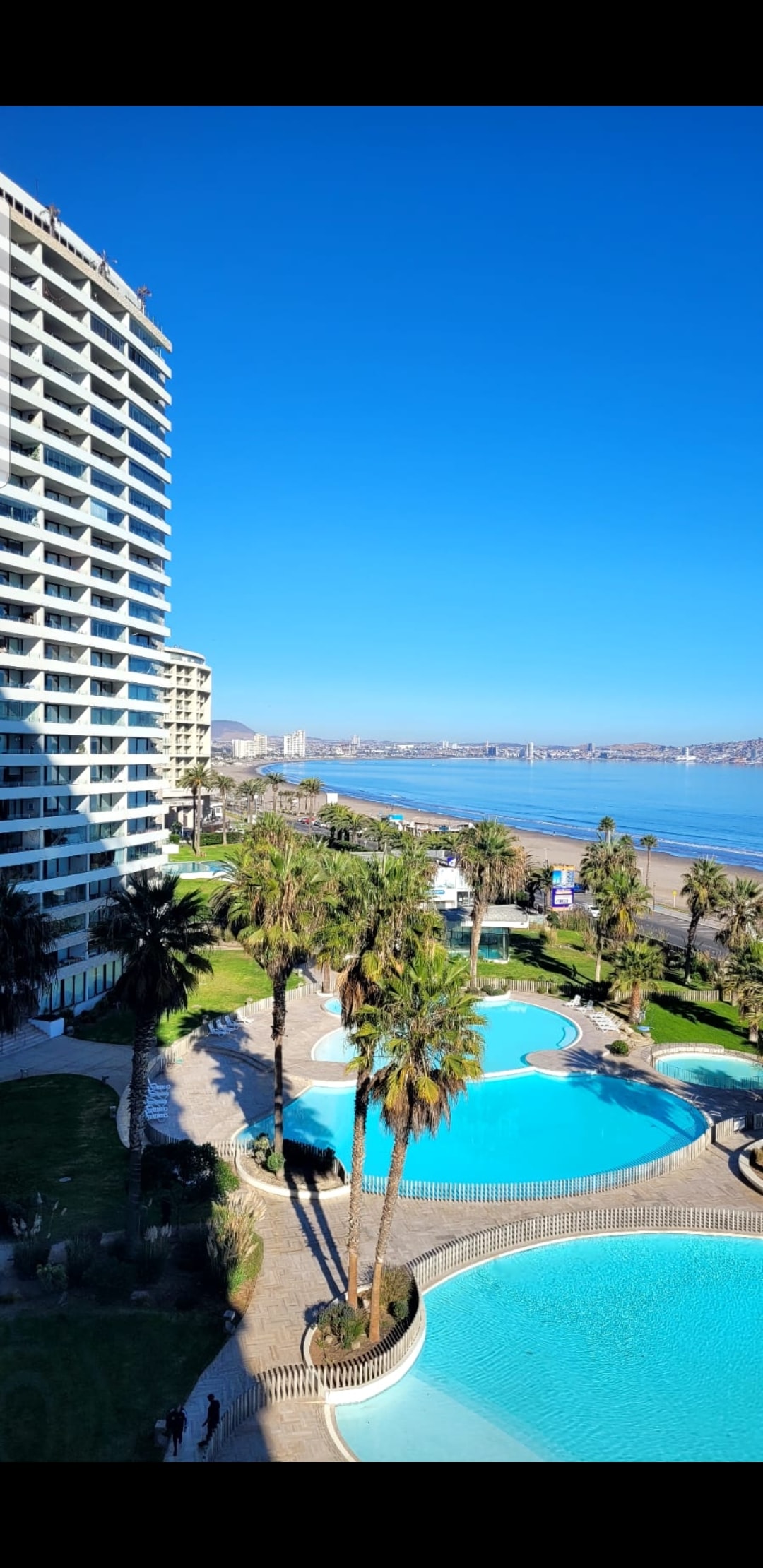 Hermoso departamento familiar , con vista al mar en un exclusivo sector de la serena con varias piscinas para distintas edades , también cuenta con piscina con olas artificiales y piscina temperada , quinchos , sauna y jacuzzi y la hermosa playa de La Serena frente al condominio , además de restaurantes, pub y ferias artesanales .