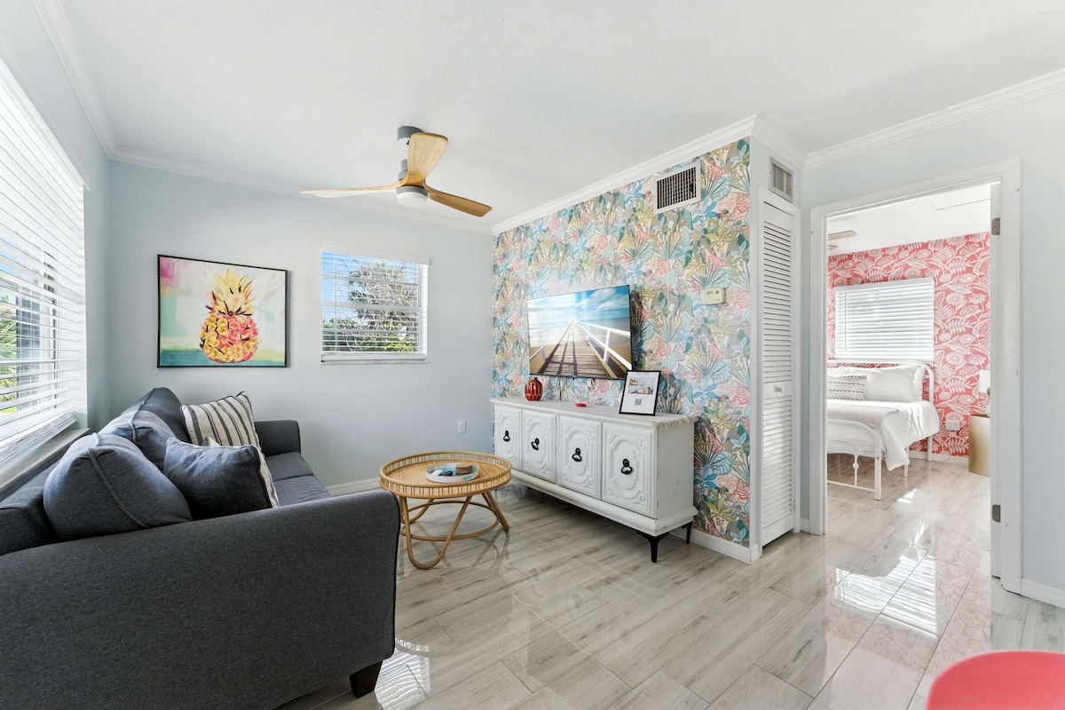 🎙️🦩Welcome to the Retro Flamingo! Your tropical getaway that combines style, fun, and the serene beauty of the Gulf Coast. This cozy, vibrant themed condo is the perfect destination for your next Beach vacation. Walking distance to Palma Sola Beach Causeway, where you can enjoy sun-bathing, horseback riding, jet skiing, and fishing! 5 mins or less from the Gulf of Mexico and powdery white sand beaches of Anna Maria Island! Kick back and relax in this retro “Old Florida” themed condo!