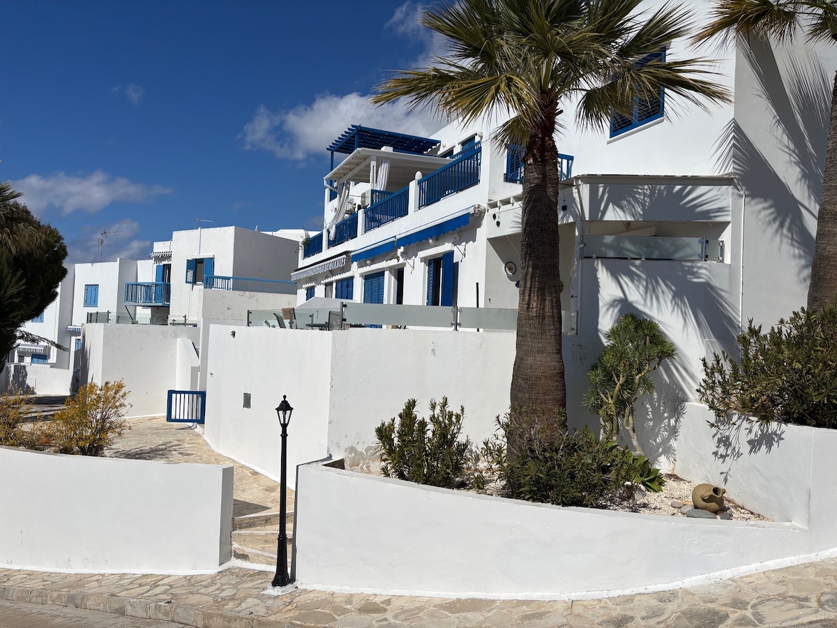 This stylish place will bright up your vacation! It is uniquely positioned with only steps away from the beach, in a peaceful neighbourhood at a vibrant touristic area. In the adjacent Tombs of the Kings avenue you will find nice restaurants and pubs and the shopping mall within only walking distance. You can enjoy a nice walk by the sea which will bring you to the harbour and main historical landmarks. It's a 20 minutes drive from Paphos Airport and you can park for free by the roadside.