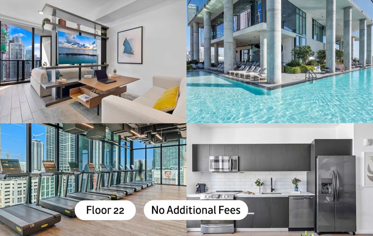 Top floor modern designer Penthouse, two bedroom, two bath, right in the heart of Miami. Enjoy style, convenience, and breathtaking views of Miami from your private wrap around balcony & take in panoramic vistas of the ocean, yachts and city. Kitchen features new stainless-steel appliances. Living room boasts brand new 4K Smart TV with dinning area. Master Bedroom has ultra comfy king size bed + en-suite, stylish Queen room both with smart TV’s. Brand new bathrooms, washer & dryer in Penthouse