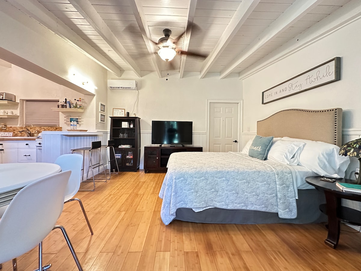 103 years old with a fresh new look! Come we just revamped our gardens! Relax in this spacious, recently renovated one bedroom cottage detached from the main house with its own living room & kitchen. Surround yourself with peaceful greenery & gardens while being steps away from the heart of Calle Ocho's art galleries & restaurants. Local bakery, grocery store, & laundromat are around the corner at your convenience. We offer coffee, tea , 2 water bottles, snacks & free street parking.