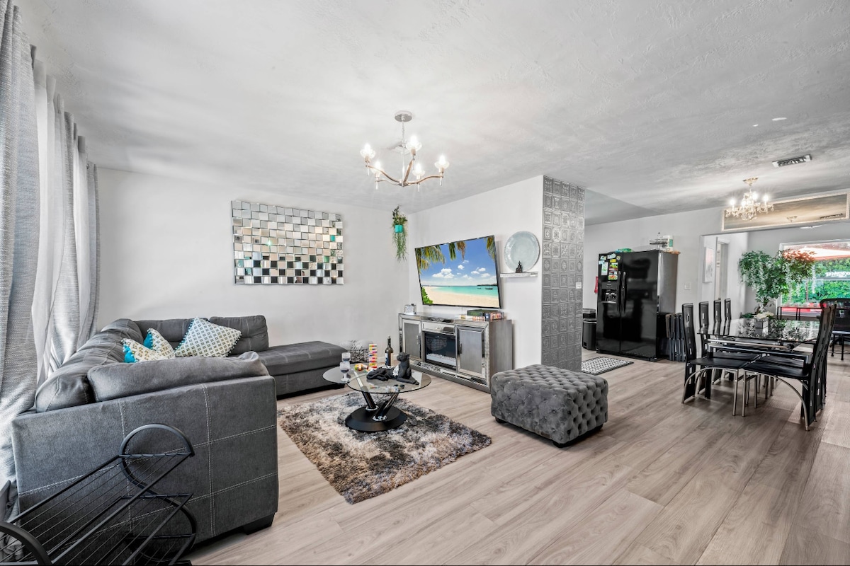 Welcome to our newly renovated house, perfect for spending some unforgettable days with your family and friends Why booking with us? 1- Best Location in the heart of Miami. 2- 15 Min to Wynwood Art District 3- 15 Min to Downtown and Brickell 4- 20 Min to Beach 6- 4 Bedrooms | 2 Baths 7- Designed for 10 guests (1 King , 2 Queen, 2 Twins, 1 Queen Sofa Bed) 7- Free Parking (5 Cars) 8- Fully Equipped Kitchen 9- Fast Wi-Fi 10- Bar 11- Kids Playground 11- Private Patio 12- Barbecue Area 13- 4 TVs