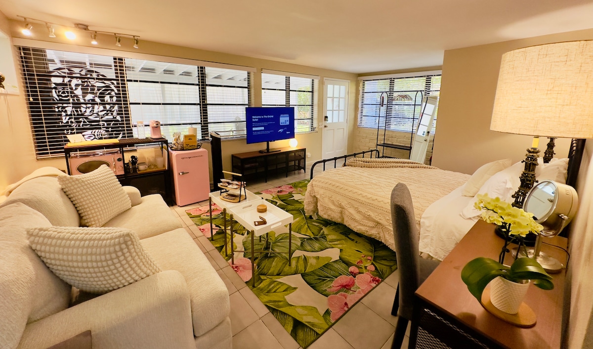Welcome to @The Gables Hideout, our beautiful studio guest house sits in a quiet and safe neighborhood in the outskirts of Coral Gables. Equipped with its own private entrance, free dedicated parking spot, its own private outdoor patio with a BBQ, and a seating area, 24hr check-in, walk in closet, Flat-Screen smart TV, a fully equipped private kitchen and high-speed WiFi.