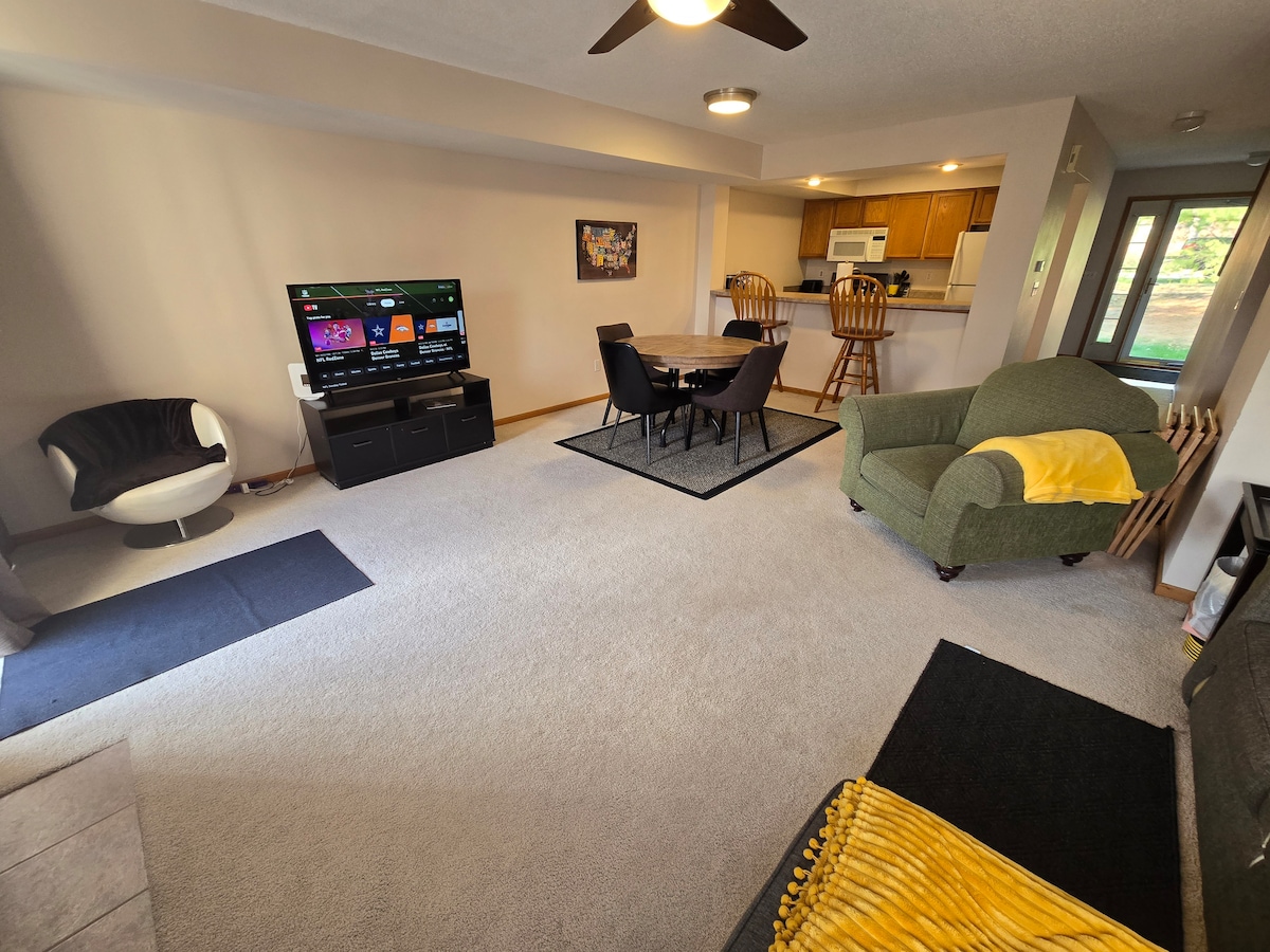Relax and recharge in a spacious private lower level suite. Independent guest entrance to 1000 sqft of private space in a quiet and walkable neighborhood. Free parking on premises. Perfect for resting after a long drive (3.5 miles from I-80), visiting family on campus (2.4 miles), traveling professionals at hospitals (2.6 miles), or sports fans wanting a quiet retreat after leaving Kinnick stadium (3 miles) or Coralville Xtream Arena (6 miles). Less than a mile away from shops and restaurants.