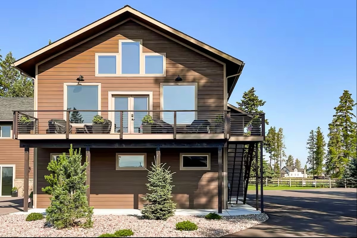 Your cozy 2-bedroom basecamp for exploring Glacier National Park, just 10 minutes away! This rustic-style apartment comfortably fits adventurers looking to rest and recharge. Just 1 mile to small town ammenities and features a full kitchen, fireplace stove, and private entrance. Perfect for couples or small families exploring the Flathead Valley. Please note: The property is located next to a bar and may experience noise.