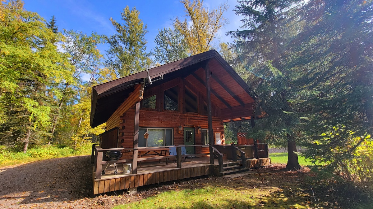 Beautiful log cabin on quiet spring fed motor-less lake only 15 miles from Glacier Park. Listen to the Loons &enjoy peaceful & fun family time. Come swim, fish & paddle in the pristine Spoon lake. Hiking & biking trails start from our property & join trails at Canyon Creek. We have a gourmet kitchen, cozy fireplace, game-room with ping-pong& foosball & board games inside. Outside are stunning views, fire pit, hammock &dock. In high season we can only accommodate week long Fri-Fri reservations.