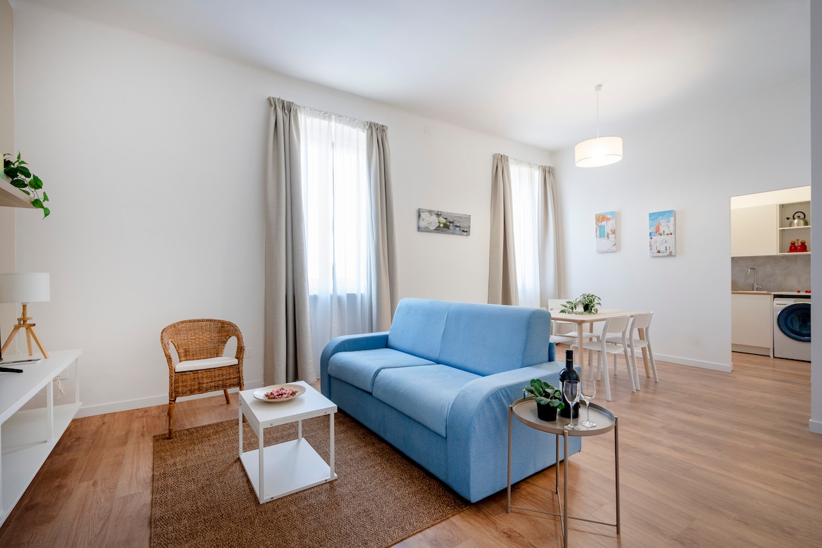 This newly renovated apartment on the second floor of a century-old building in the city center offers to the guests modern facilities combined with the charm of the historic italian architecture. The apartment boasts a balcony, A/C, private kitchen with Nespresso coffee machine and bathroom with shower and bidet. Laundry and late check-in are available for our guests for free. Close proximity to the port and the Old Town allows to explore the most important attractions of the city on foot.