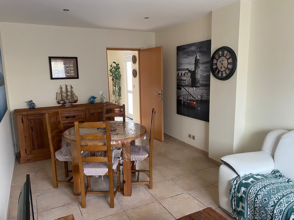 Jolie studio indépendant de 18m2 pour 2 personnes (adapté au fauteuil roulant), il y a un canapé lit dont le matelas est de très bonne qualité. Il s'ouvre sur une cours agréable avec un barbecue électrique. SAINT-FELIU-D'AMONT est un petit village paisible proche de Perpignan entre mer et montagne, proche de sites à visiter tel que les Orgues d'Illes, et de lieux de randonnés magnifiques. A 30 min de Canet plage et de l'Espagne, à 1h de la montagne. Le linge de lit et de toilette sont fournis.