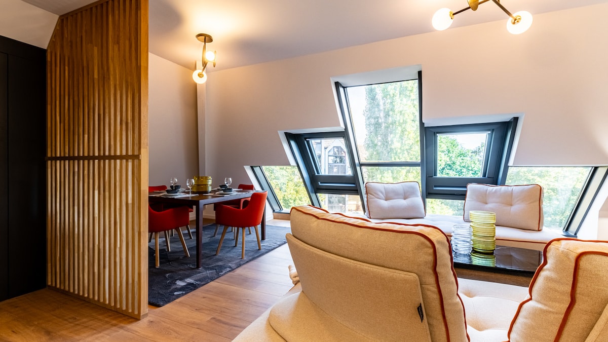 Profitez d'un logement élégant et central, à 2 pas de la Cité Internationale de la Gastronomie et du Vin. Dans une rue calme, au stationnement facile et gratuit, bordée par le canal de l'Ouche et sa promenade ombragée. Vous serez idéalement placé pour découvrir la ville de Dijon, son centre historique, ses restaurants et ses commerces, tout est faisable à pied. Si vous préférez vous déplacer en transport en commun vous aurez, la gare, les bus, et la station de Tramway 1erMai à moins de 100m