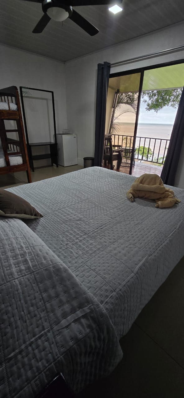 This room is $105 based on two guest, each additional person is $20. Capacity for up to 5 people. The Waterfront Cabina 2 is facing the waterfront and on the Gulfo Dulce with a beautiful and large private deck with a kitchen. The room features a queen bed, and a double bunk bed with the double bed on the bottom and a single bunk-bed on top. We don't have a cleaning fee!!! This is included!