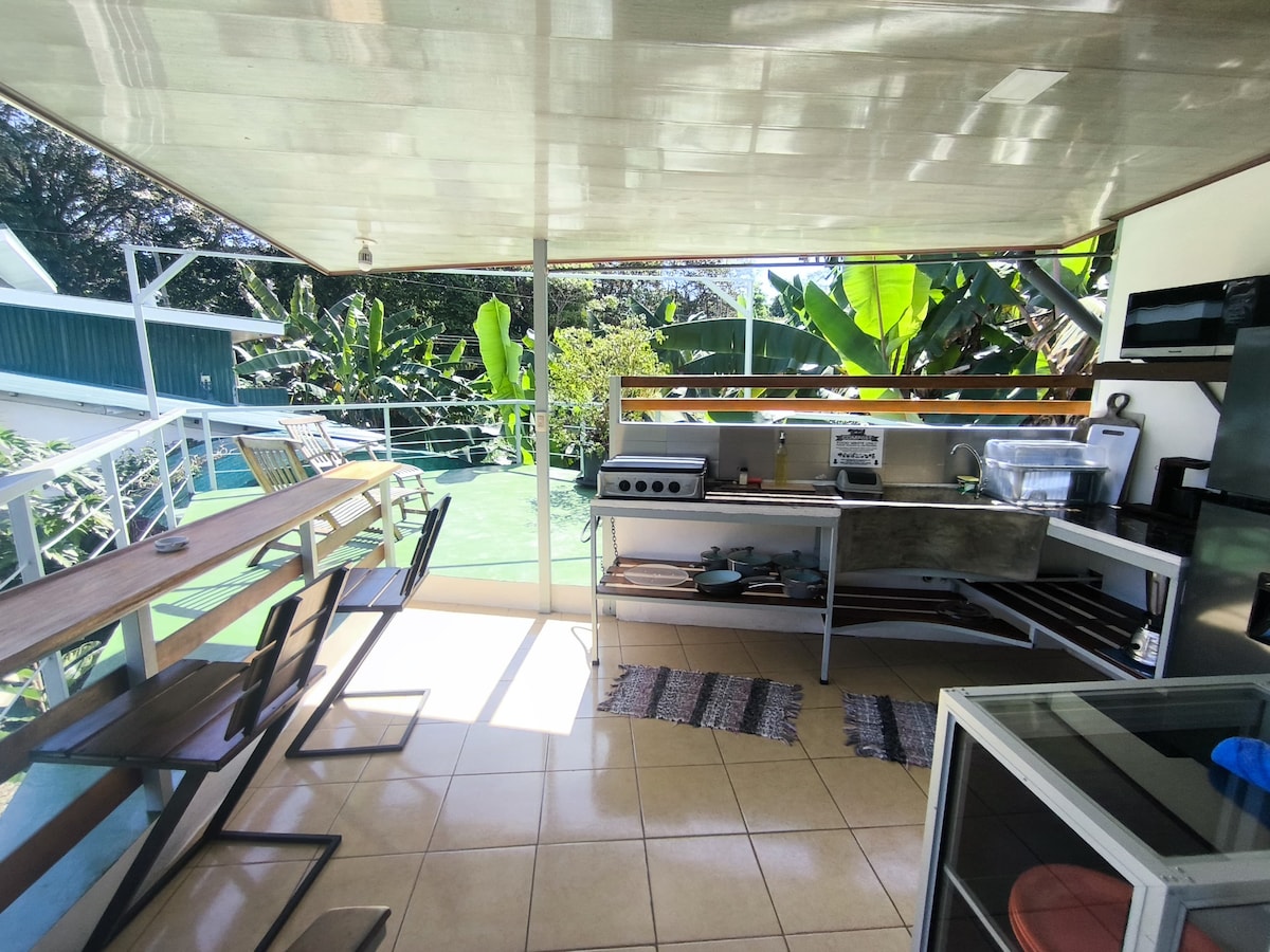 Atardecer de miel se encuentra dentro de una propiedad de áreas comunes compartidas (piscina, jardín, parqueo,lavadora) A/C ó ventilador, cocina full equipada, BBQ, WIFI 100MB, NO TV, NO AGUA CALIENTE. La anfitriona vive en la misma propiedad, siempre dispuesta a ayudar, te puedo ayudar con info de tours. A 300 mtrs de los comercios principales, a 800 mtrs de la playa, etc. Lugar tranquilo y con cámaras de seguridad, amplio parqueo. Puedes ver lapas, tucanes, iguanas, etc, desde el balcon.