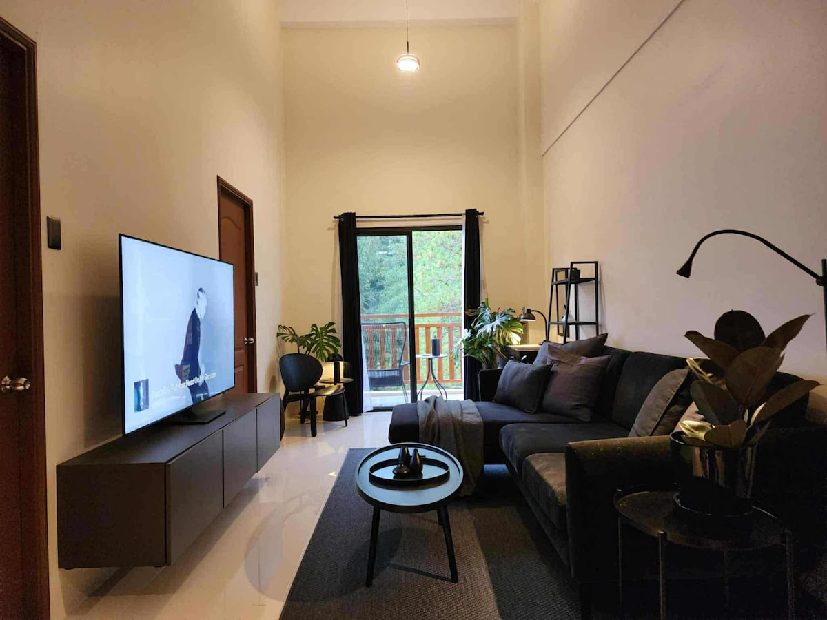 Experience a stylish industrial-inspired studio designed for comfort and convenience. This space features a fully equipped kitchen with complete utensils, perfect for home-cooked meals. The cozy and stylish interior provides a relaxing atmosphere, ideal for couples looking for a quiet retreat. Located close to the city center, with easy access to jeepney lines and taxi routes, making it convenient to explore Baguio. A great choice for those seeking both comfort and accessibility.