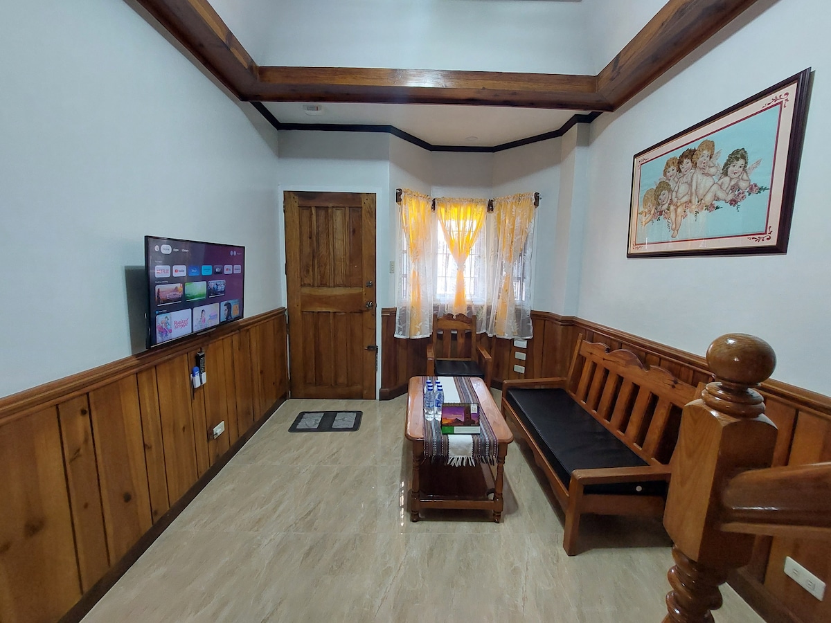 Forget your worries in this spacious and serene space apartment with panoramic city view from our balcony. Located at Middle Rock quarry and close to tourist spots. Burnham Park, Lourdes Grotto and Mirador Heritage and Eco Park is a few minutes away. Very accessible to public transportation. Just take a Jeepney or taxi infront of the house. We have a secured Parking. PLDT Fiber Wifi Connection for those work at home employees. 60"Smart TV, Furnished living room/kitchen/fresh linens/towels.