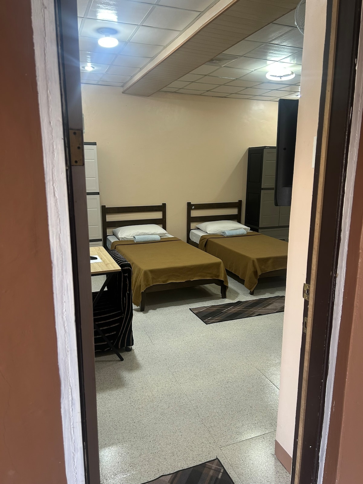 The studio unit is located in the basement of a 3 storey house in Camp 7. It is situated in a subdivision surrounded by pine trees. It is 10-15 minutes away (by car) from downtown. Ideal for guests w/ own vehicles. The unit has 1 queen bed, 1 double bed w/ pullout. Ideal for couples or small family. It has a work station, 43 in smart tv, shower heater, dining table, ref, microwave, electric stove, rice cooker, hot & cold water. It has a fast internet - PLDT Fibr w/ own wifi router (90 mbps)