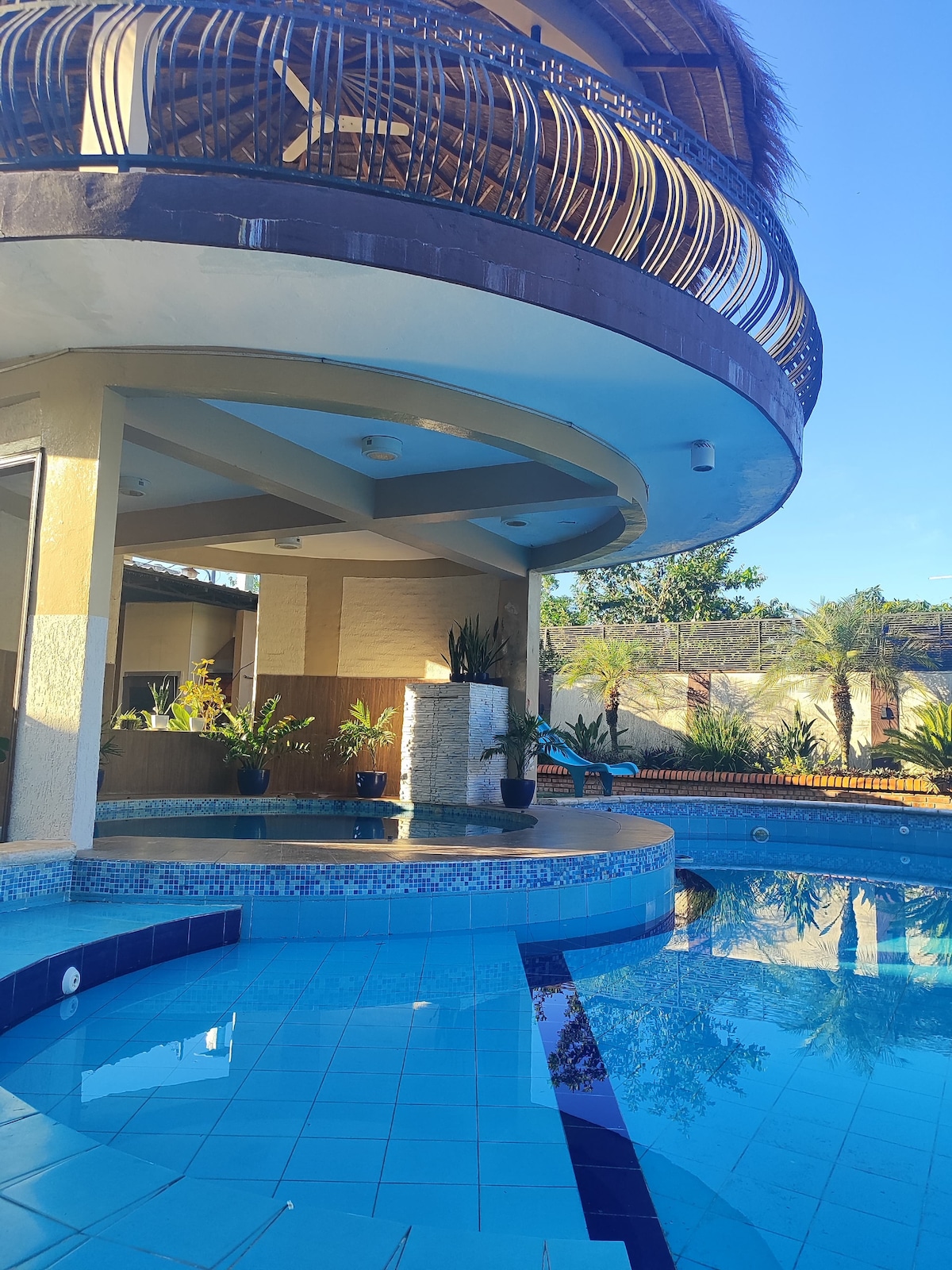 Here you can relax in peace or have a lavish party, just as you like! With every comfort, in the middle of nature and yet close to San Bernardino and just a stone's throw from Caacupé with its basilica. Enjoy the unobstructed view of the valley of Ypacaraí up to the skyline of the capital Asunción. In the pool or on the terrace you can enjoy the day and then the romantic sunset. Or would you rather have a glass of champagne in the indoor whirlpool?
