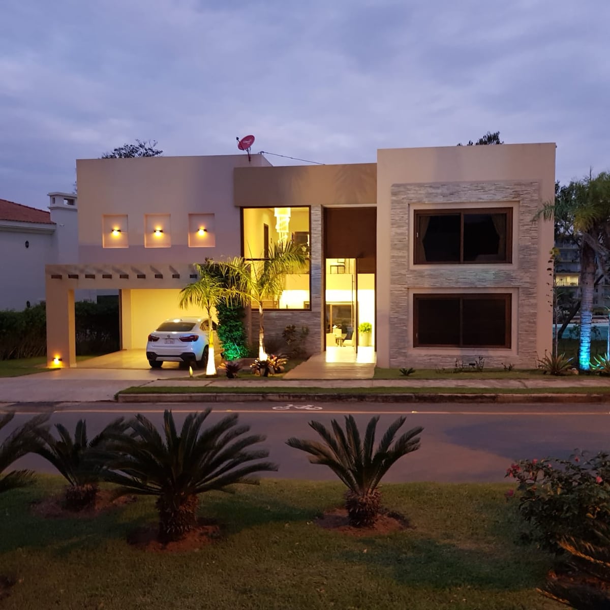 Residencia con ubicación estratégica: Diagonal a Marketplace, Biggie24hs a 30 mts. con salida directa a Ciclovia de San Bernardino. A 5 cuadras del lago, a 9 cuadras del Club Náutico, a 3 cuadras de Superseis Express. Hermoso y amplio patio, full empastado con palmeras diversas y árboles. Gran piscina con jacuzzi y reposeras. Deck solarium y baño de piscina. Amplio Quincho con parrilla climatizado y sala de estar. Estacionamiento para 4 autos grandes o 6 autos chicos.