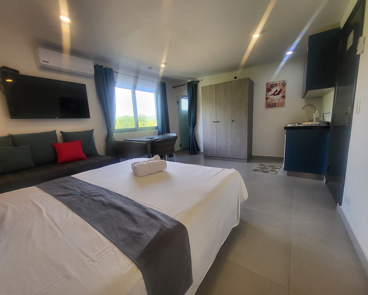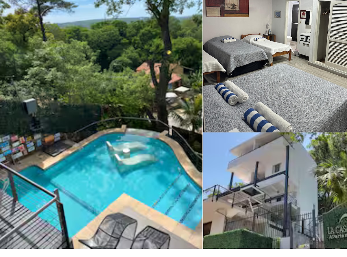 Bienvenidos a nuestro encantador alojamiento, donde la modernidad y el confort se fusionan con un entorno tranquilo. Disfruta de habitaciones con aire acondicionado, un hermoso jardín, y una piscina cristalina con servicio de bar. Ideal para familias, amigos y viajeros de negocios que buscan relajarse y disfrutar de un ambiente sereno y agradable.