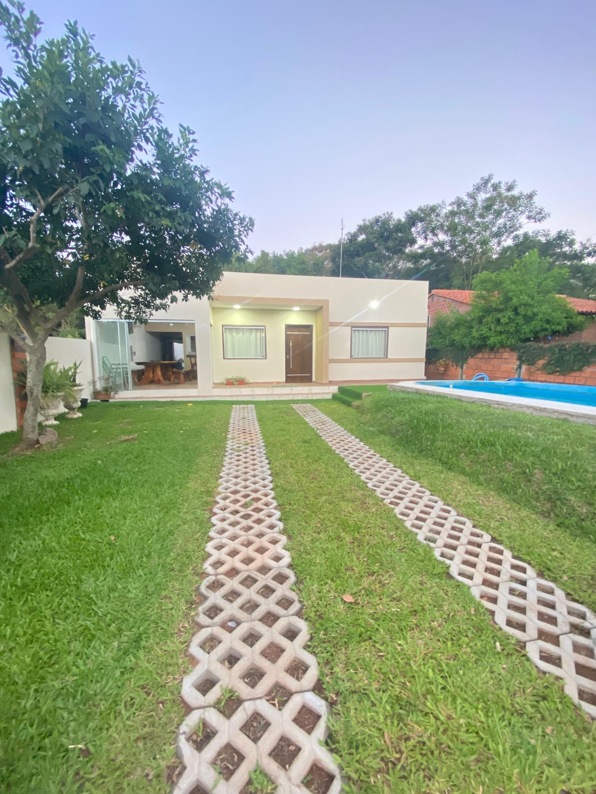 Nuestra casita es sencilla, acogedora y cuenta con todo lo necesario para compartir en familia, especialmente en los días de mucho calor: todos los espacios están climatizados. Es Ideal para tirar algo a la parilla y “ piletear” como decimos en Paraguay a pasar el tiempo en la piscina. A 2km del centro de Aregua, la casa te ofrece tranquilidad y comodidad para refrescarte y descansar.