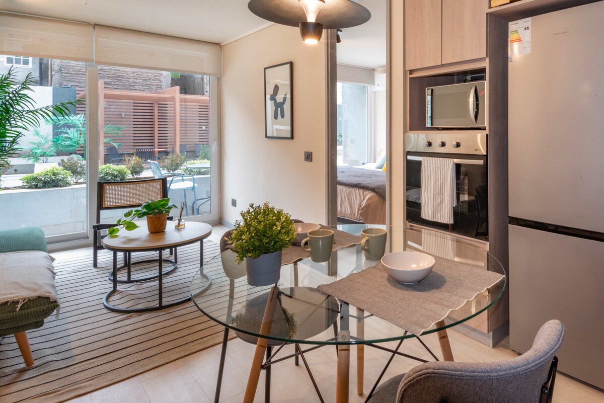 Acogedor y moderno estudio en Las Condes, a solo 3 minutos caminando del Metro Hernando de Magallanes. Ubicado en un barrio seguro y tranquilo, rodeado de parques, restaurantes, cafés y centros comerciales. El espacio cuenta con A/C, cocina full equipada, Smart TV, WIFI, zona de descanso confortable y todas las comodidades necesarias para una estadía placentera. Ideal tanto para turistas que desean explorar Santiago como para viajeros de negocios que buscan comodidad y excelente conectividad.