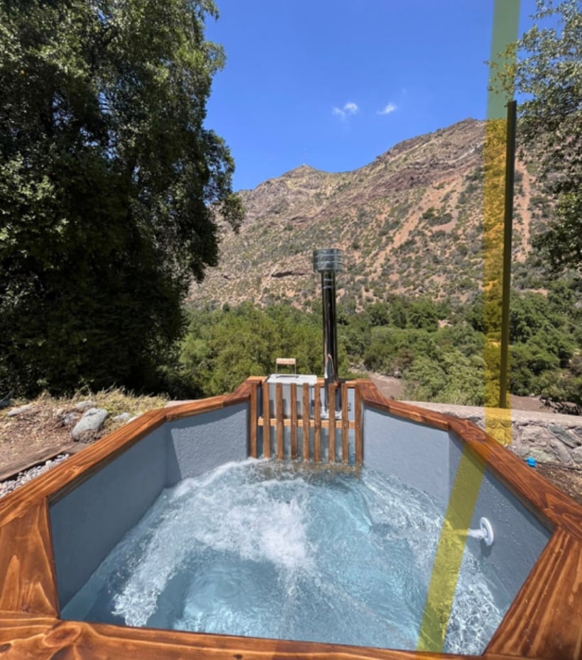 Escape to Tranquility in Our Cabin with Private Hot Tub in Pirque We invite you to discover tranquility at a cabin near Santiago. Located in Pirque, home to Chile's most iconic vineyards and just minutes away from the majestic Río Clarillo National Park, our cabin offers a modern retreat where relaxation takes the spotlight. Enjoy the privacy of your own oasis with a hot tub equipped with hydrotherapy. The cabin is designed to blend modern comfort with the natural charm of Pirque.