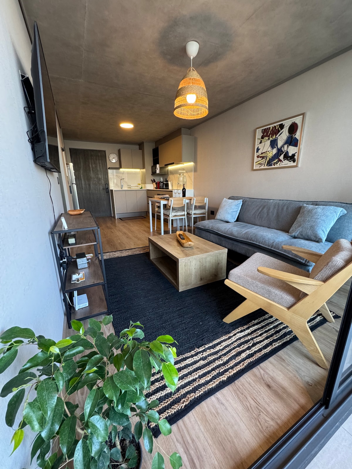 Encantador departamento en el corazón de Santiago con una impresionante vista panorámica del centro de la ciudad. Disfruta de los rascacielos iluminados por la noche y de paisajes urbanos durante el día. Este acogedor espacio cuenta con comodidades modernas, una decoración elegante y todas las comodidades necesarias para una estancia inolvidable. Desde el balcón privado, podrás deleitarte con vistas panorámicas que abarcan desde la cordillera hasta los puntos emblemáticos de la ciudad.