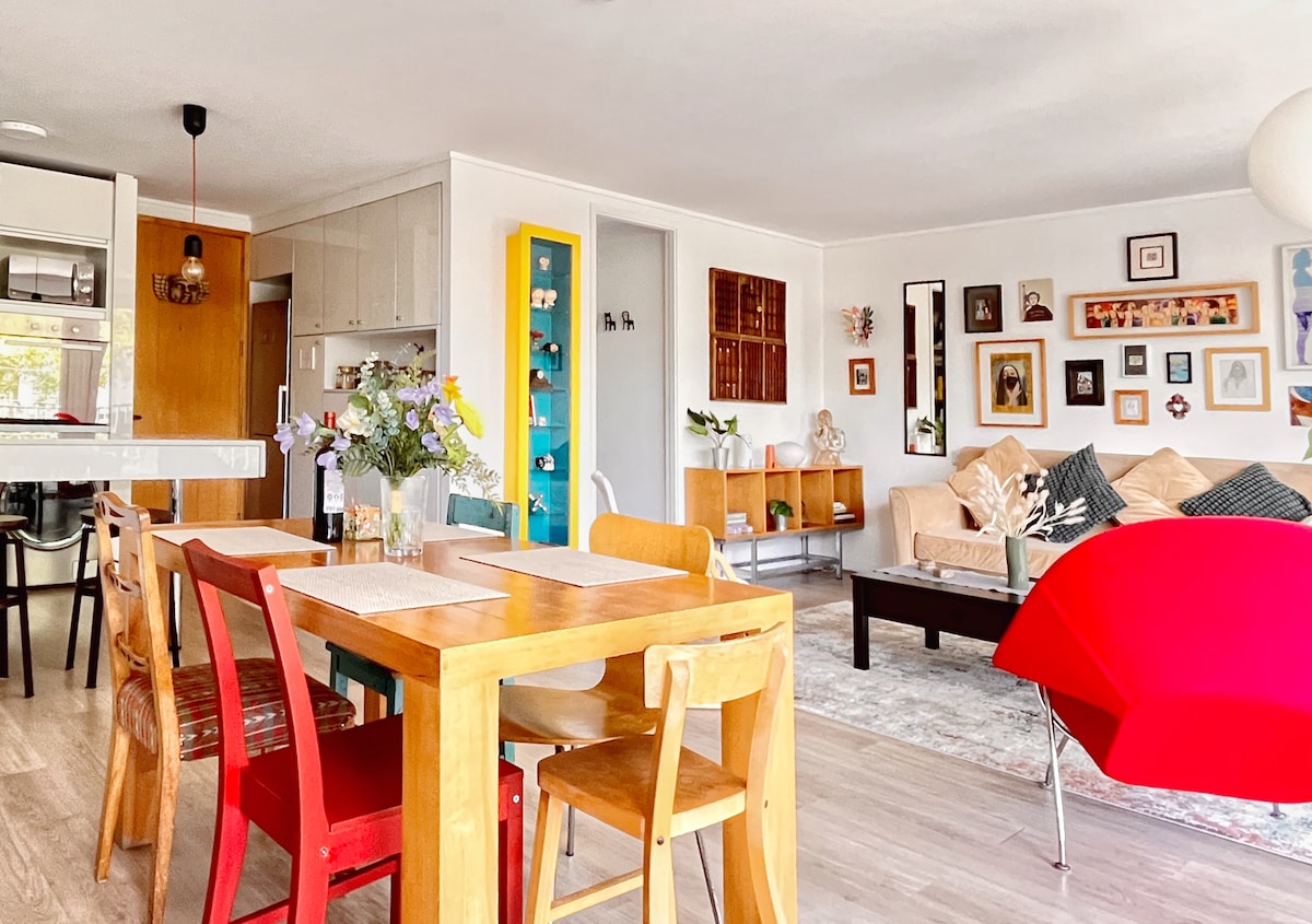 Bienvenid@ a tu refugio en Vitacura Te invitamos a disfrutar de este cómodo y luminoso departamento, ubicado en una de las zonas más lindas y seguras de Santiago. Aquí estarás a pasos del Parque Arauco, Open Kennedy, el Parque Araucano y la Clínica Alemana. El departamento está pensado para que te sientas como en casa: tiene una cocina integrada hecha en madera, completamente equipada para que puedas cocinar lo que quieras; una cama king muy cómoda y un sofa cama con topper..