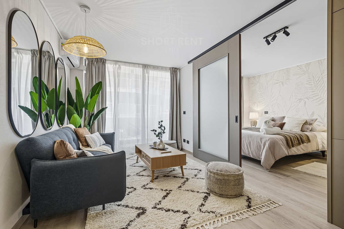 Departamento de Alto Standard ubicado en excelente sector de Santiago, a pasos del Parque Arauco, restaurantes y centros comerciales, y próximo a clínicas, zonas de interés turístico y agencias de ski. Vivirán como locales, con impresionantes vistas a la Cordillera de Los Andes y todas las comodidades para hacer que su estadía sea inolvidable. El departamento está pensado como un refugio elegante e inspirador. Se sentirán como en casa y disfrutarán de un espacio acogedor y relajante.