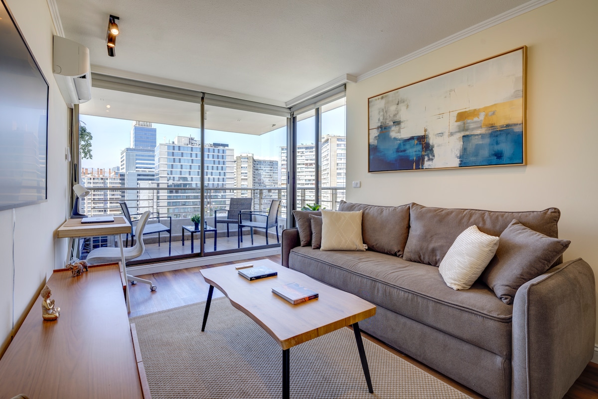 Elegante departamento situado en el corazón de Providencia. Con una impresionante vista a la cordillera de los Andes y al icónico Cerro San Cristóbal. Ubicado a solo pasos del metro Los Leones (Línea 1), mercado urbano tobalaba MUT y del Costanera Center, el centro comercial más grande de Chile. Rodeado de una amplia gama de restaurantes y bares. Ideal tanto para estancias cortas como largas, te ofrecemos un refugio perfecto para explorar Santiago o para relajarte después de un día ajetreado.