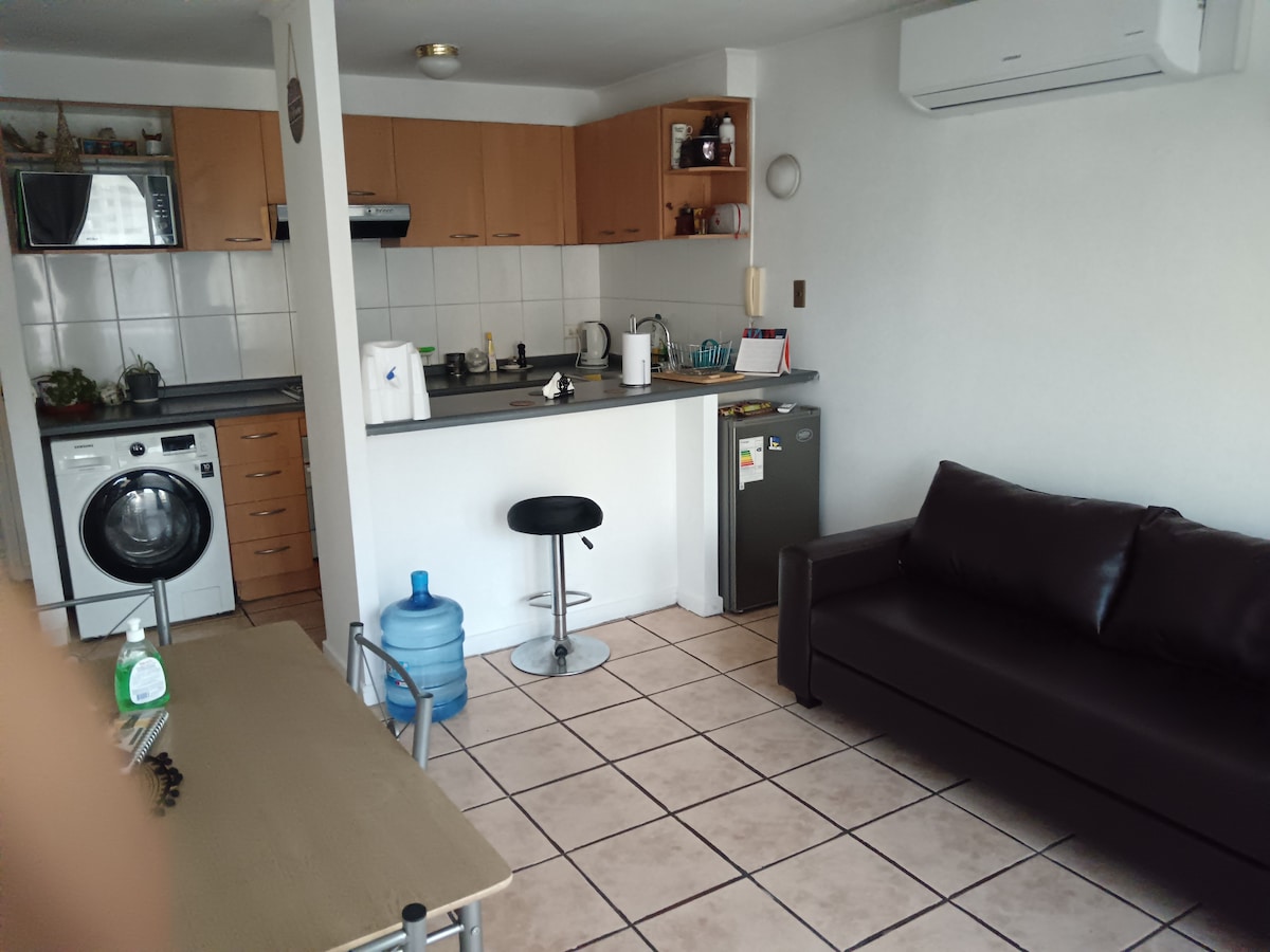 Ubicado cerca de Barrio Italia y a pocas cuadras de Plaza Ñuñoa. En los alrededores podrás encontrar comercio (Costanera Center a 10 min), excelente gastronomía, y más. Estarás a pasos de Metro Ñuñoa, con múltiples conexiones para llegar donde desees ¡Será fácil planear tu visita! Si quieres descansar, cerca puedes comprar lo que necesites, y podrás usar las áreas comunes como piscina y gimnasio. El Aeropuerto de Santiago está a 30 min de viaje. ¡Te espero! (NO hay estacionamiento, consultar)