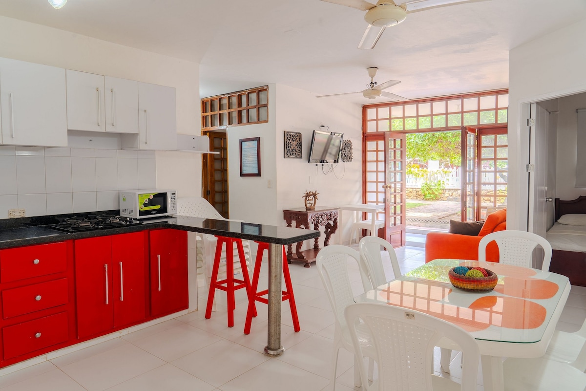 Es un lugar para sanar, inspirarte, olvidar o recordar, o simplemente buscar tranquilidad y goce. La Casa Amarilla, en madera, combina un estilo rústico con un estilo local. Por sus ventanas se cuela la imponente vista del mar, la vida sencilla de algunos lugareños y pululan los cangrejos en su patio. Hay 2 bicicletas a tú disposición y en la playa puedes tomar las lanchas a Isla Fuerte para realizar careteo y disfrutar de sus playas y comida. Podemos orientarte para mejorar la experiencia.